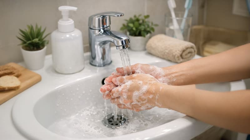 猫を触った後、赤ちゃんに触れる前は手を洗っておきます。家族や友人にも一言伝えておくと気持ちよく過ごせます。