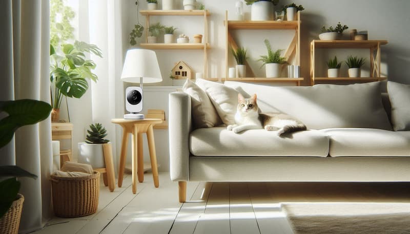 カメラは、猫がよく過ごす場所を見渡せる位置に設置するのがベストです。リビングや猫のお気に入りスポットが映るようにすると、様子をしっかり確認できます。