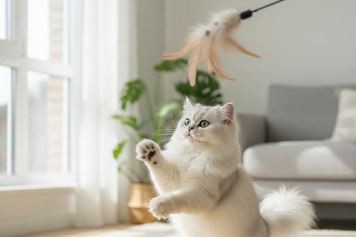 遊ぶ時間は1回5〜15分程度で十分です。それを1日に2〜3回できれば理想的ですが、難しい場合は朝と夜の2回だけでも効果があります。猫じゃらしやボールなど、猫の狩猟本能を刺激するおもちゃを使うと、短時間でもしっかり運動できます。