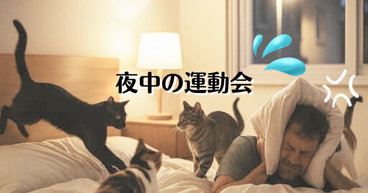 猫が夜中に突然走り回る「運動会」は、日中の運動不足やエネルギーの発散不足が主な原因です。