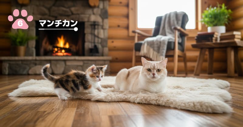 注意点: 短足は椎間板ヘルニアや関節炎のリスクがあります。高すぎるキャットタワーは避け、床にクッション性のあるマットを敷くなど配慮が必要です。