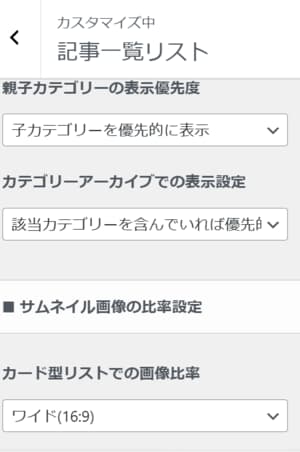 「外観」→「カスタマイズ」→「記事一覧リスト」→「サムネイル画像の比率設定」をOGP(1.91:1)に変更
