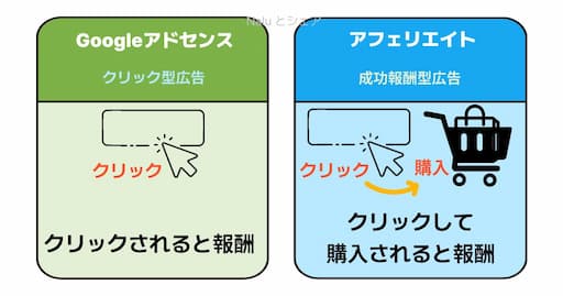 どちらも広告で収入を得る仕組みですが、報酬の発生方法や使い方に違いがあるため、それぞれの特徴を理解しておきましょう。