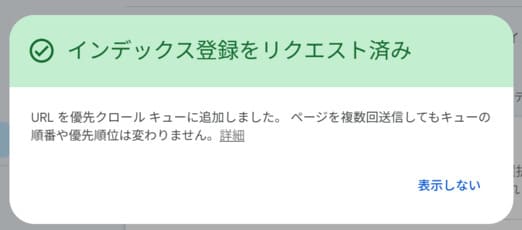これは「わたしの新しい記事を見てください!」とGoogleにお願いする作業です。すぐに登録されるとは限りませんが、Googleのクローラー(巡回ロボット)を呼び込む手助けになります。