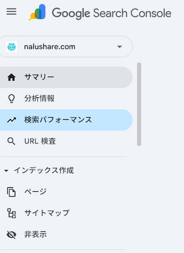サーチコンソールの画面を開いて最初に表示される「サマリー」は、ブログ全体の状況を一目で確認できる画面です。