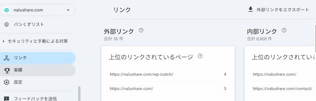 左側メニューの「リンク」では、あなたのブログが他のサイトや記事同士でどうつながっているかが分かります。