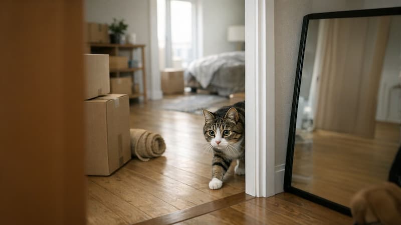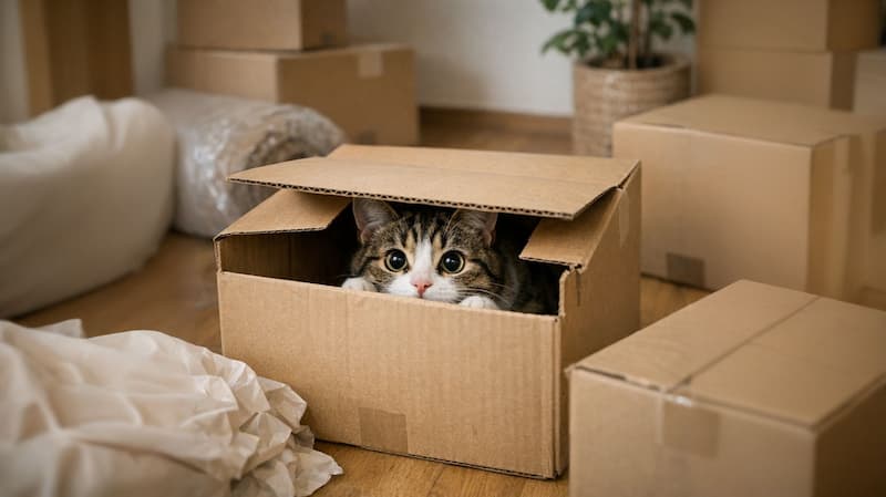 荷造りや搬出入の騒音、知らない人の出入り、普段と違う家族の様子など、引越し作業そのものが猫を不安にさせます。