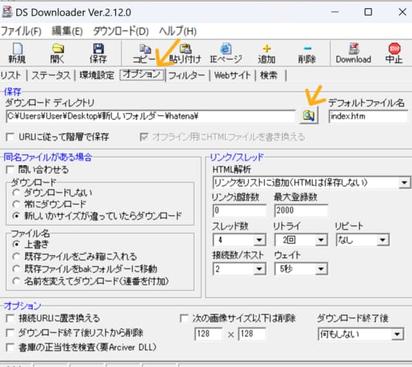 2000枚以上の場合は次のツール(DSダウンローダー)の設定に変更をする必要があります。