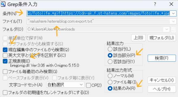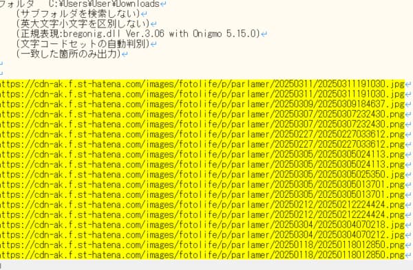 先ほどのサクラエディタで抽出された画像のURLをすべてコピーしてここに貼り付けます。
