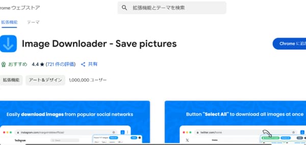 Googleの機能拡張ツール Image Downloader をインストールします。
