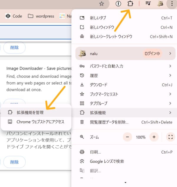 無ければ自分のアイコンの右にある「から「拡張機能を管理」の中にあります。