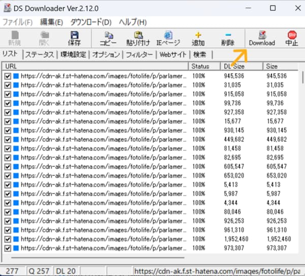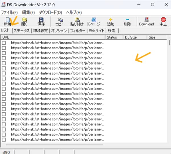 1、サクラエディタとDSダウンローダーで、画像を一括ダウンロードする