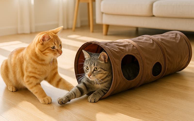 | 隠れ家タイプ | トンネルやキャットテント。 | 「隠れる」「潜む」本能を満たしたいとき、探索遊びが好きな猫 |