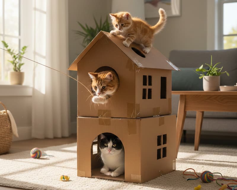 市販品だけでなく、紙袋やアルミホイル、ペットボトルのキャップなど、家にあるもので手作りおもちゃを作るのも楽しい方法です。コストをかけずに猫が喜ぶ遊び道具が作れます。
