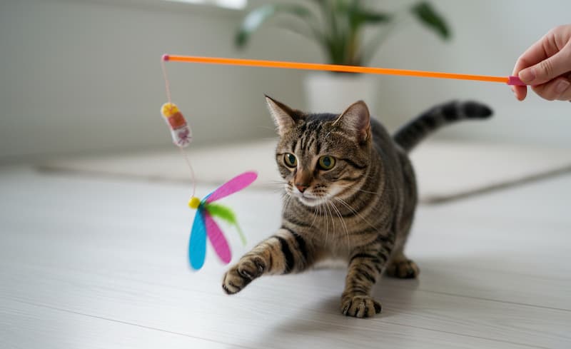 | 電動おもちゃ | 自動で不規則に動くねずみ型や回転タイプなど。 | 猫が一人で楽しめるとき、活発な猫。ただし、音や動きが苦手な猫もいる |