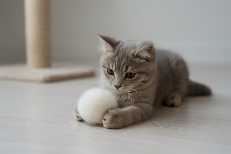 | 臆病で警戒心が強い | 急な動きや大きな音を怖がる。 | 静かに転がるフェルトボール、ゆっくり動かせる羽根つき猫じゃらし | 最初は近くに置いておくだけにし、徐々に慣らす |