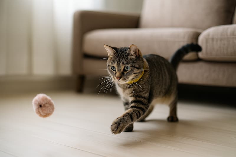| シニア猫 | 体力が落ちてくる。激しい運動は避けるべき。 | ゆっくり転がるボール、手でちょいちょいできる小さなおもちゃ | 関節に負担をかけないよう、ジャンプが必要なおもちゃは避ける |